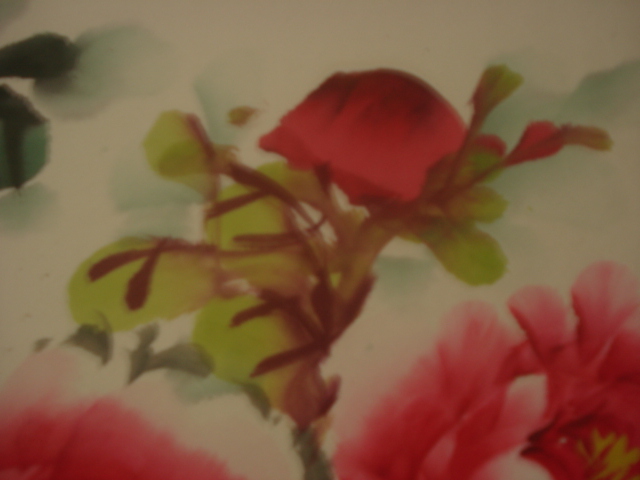 恰巧,我家就有一副牡丹画,艳丽的花朵静静得挂在枝头,它们开的无拘无束,潇潇洒洒。挂在枝头的两朵含苞欲放的花蕾,显得格外娇媚。而大的几朵牡丹却格外引人注目,几瓣粉中带白的花瓣,淡黄色的花蕊,墨绿色的叶子衬托得古色古香,还有几朵粉中掺黄的花瓣,则花蕊是淡蓝色的,墨绿色的叶子映衬得格外素雅。还有一对花蝴蝶,扑棱棱的扇动着翅膀,是这幅画增添了一丝灵动的美。