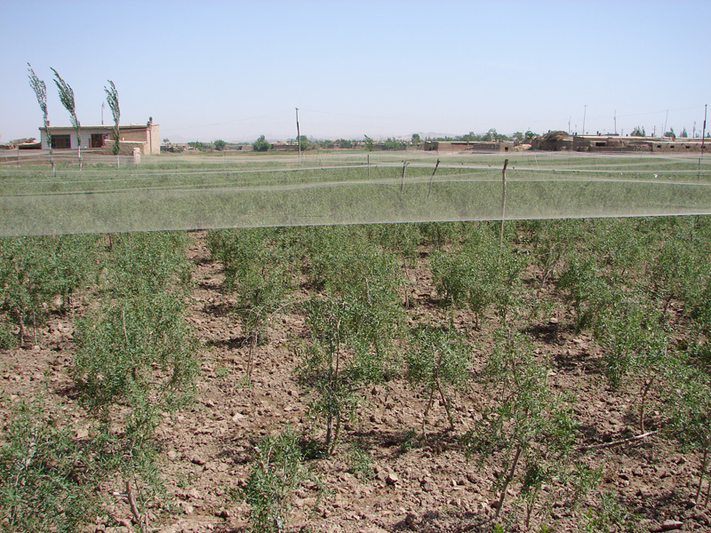 出了蘑菇园,我们路过一枸杞园子,感动于园子里那一畦碧绿,便停下来了.怎么园子上面还罩着一层纱啊?呵呵,我特意给您打探了一下,原来是为了防止鸟雀叨吃果子才这么做的.不过,上面罩的倒不是什么纱,而是抓鱼用的粘网啊.为防鸟雀,村民们竟用上了此等手段,不能不算是一种创新哦.