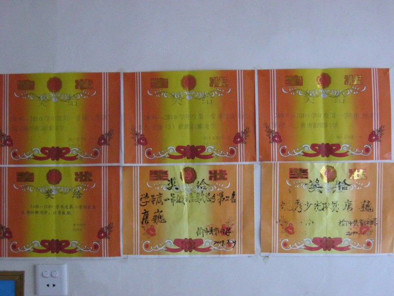 通过交谈了解到,唐家现有四口人,夫妻二人拉扯两个孩子,小儿子上小学4年级。两位老人两年间相继病逝,谈到老人,唐爸爸低着头,慢慢的说着都是病害的,瘫痪在床好多年了,家里现在还欠着2万多的外.......说着说着眼圈就红了。他是一个孝顺的儿子。我不好安慰他,便借拍照离开,招呼唐淑娜的弟弟——一个小学四年级腼腆的小男孩参观他家,小家伙很海信地带我去了唐淑娜的书房,进门墙上贴满了她的奖状,小弟弟骄傲的指着说,姐姐的奖状比我多3张,我一定会超过她的,言语间信心满满,姐弟两相视一笑,我明白了,这就是优秀学生家的“内促力”,我对这清贫家庭的竞争氛围而欣喜,同时,为能给他们给予帮助而欣慰。
