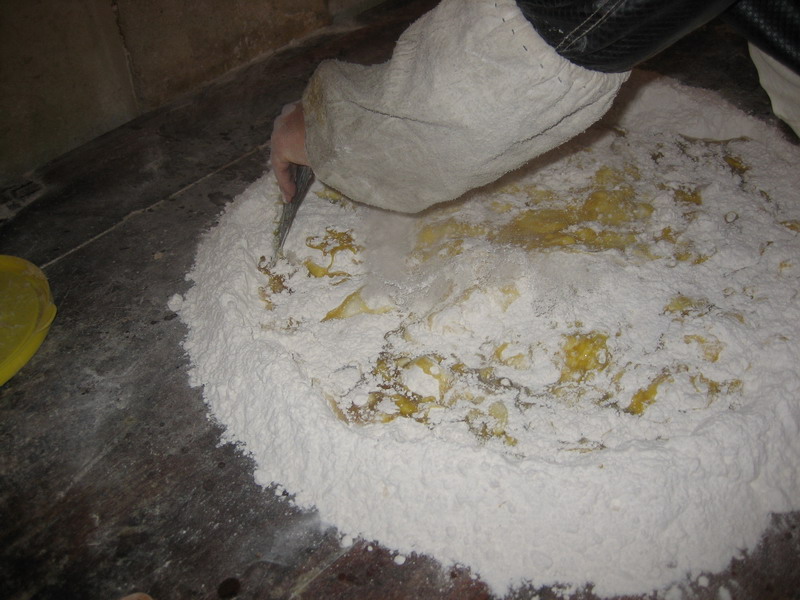 准备好3千克面粉(制作饼干要选用自己加工的面粉,最好不用食品店买回来的),1千克白糖,1千克食用油(最好用麻油),鸡蛋500克,至于牛奶嘛,可以根据个人口味进行调配。把准备好的面粉圈成圆环状,把白糖、食用油、牛奶、鸡蛋、小苏打粉等搅拌均匀后,用铲刀开始和面。