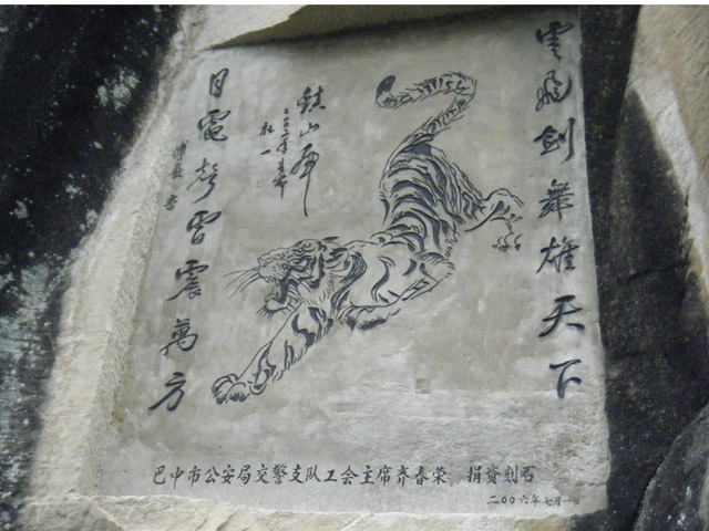 于是我和大家一路有说有笑。不一会儿,我们便到了大木山。刚到时,便看见袁家祥老爷爷在那儿等我们了。而且我们还看见他带领先到的学生一起在搬石头填路上的坑呢!见我们都到了,他们停下手中的活儿,和我们一起来到了大木山的入口。只见这里的一块石壁上刻着"巴中大木山"几个大字。袁爷爷便叫我们停下来,然后他向我们讲起了大木山的来历。虽然我记计得不是很清楚,但有一点我记下了,那就是这里曾经有一棵七围大树,大木山因此而得名。