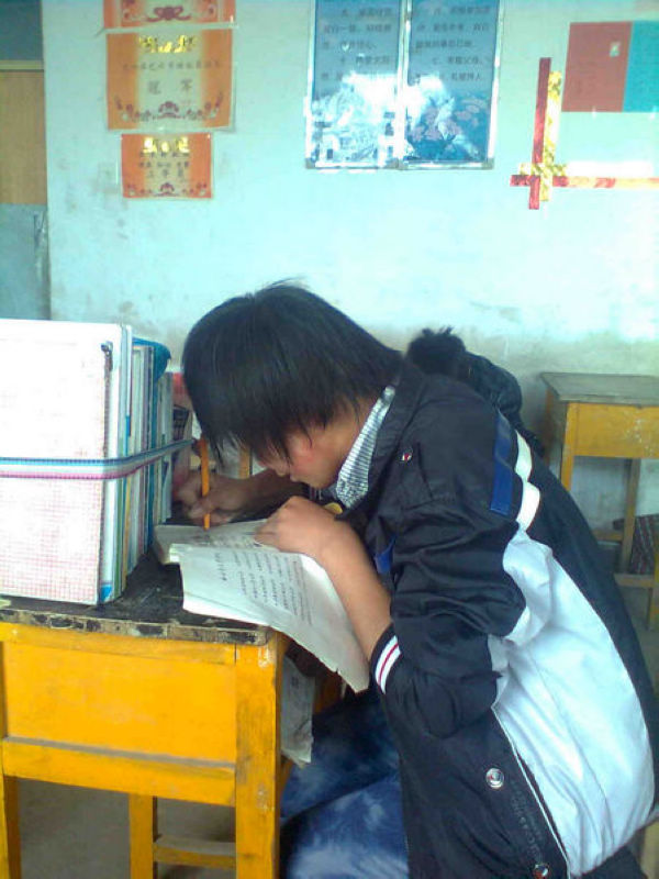 看,在后面坐的哪位男孩子,自习课上,一会注视着老师的行踪,一会低头睡觉,一会交头接耳,哎,真不知道他来干啥了。真希望他能向冯惠一样好好学习。