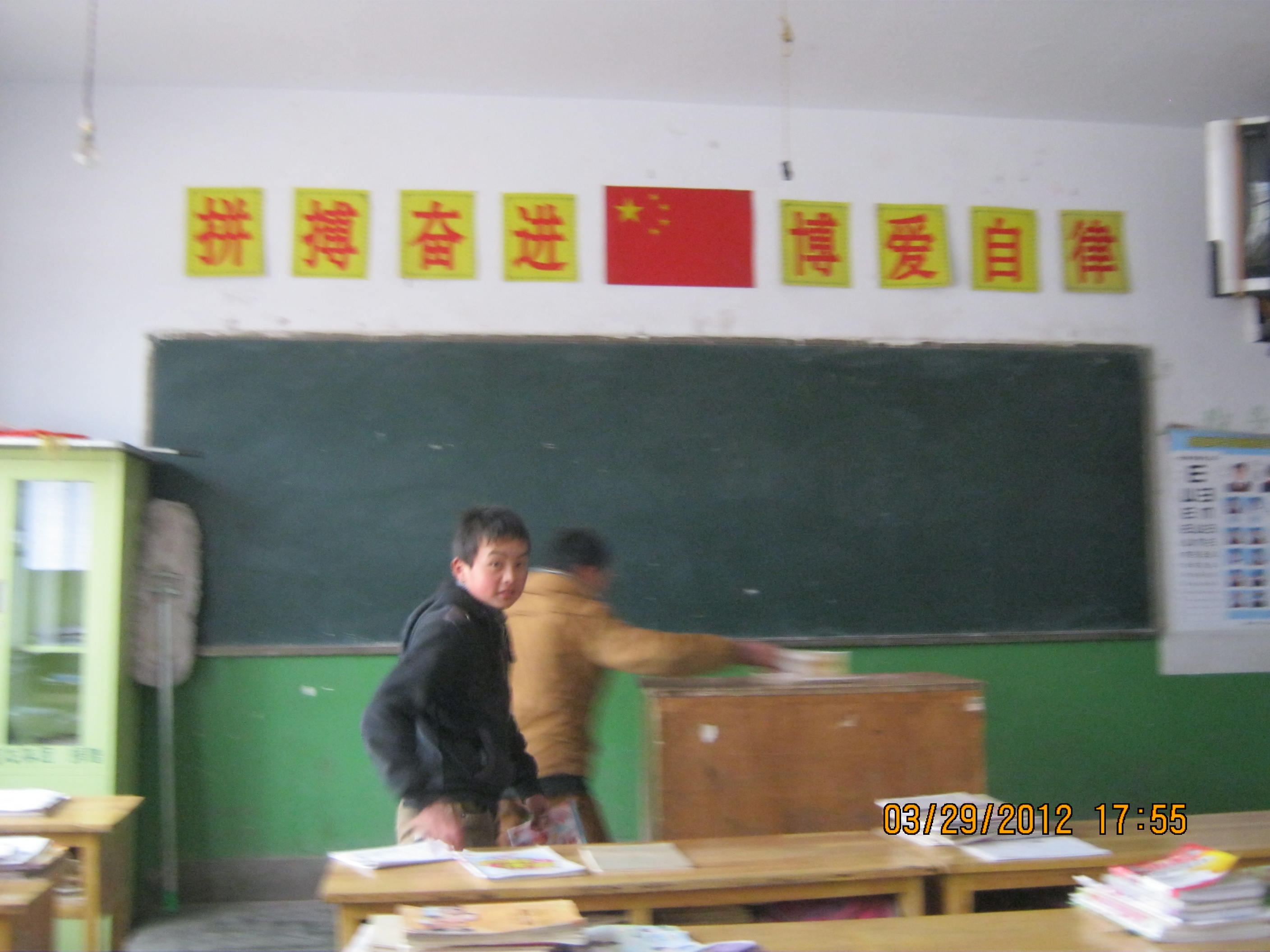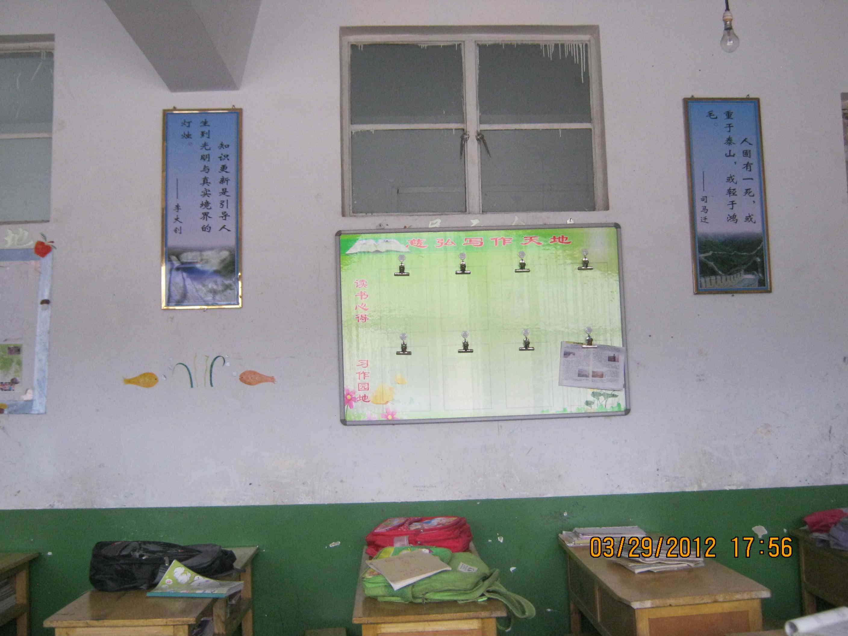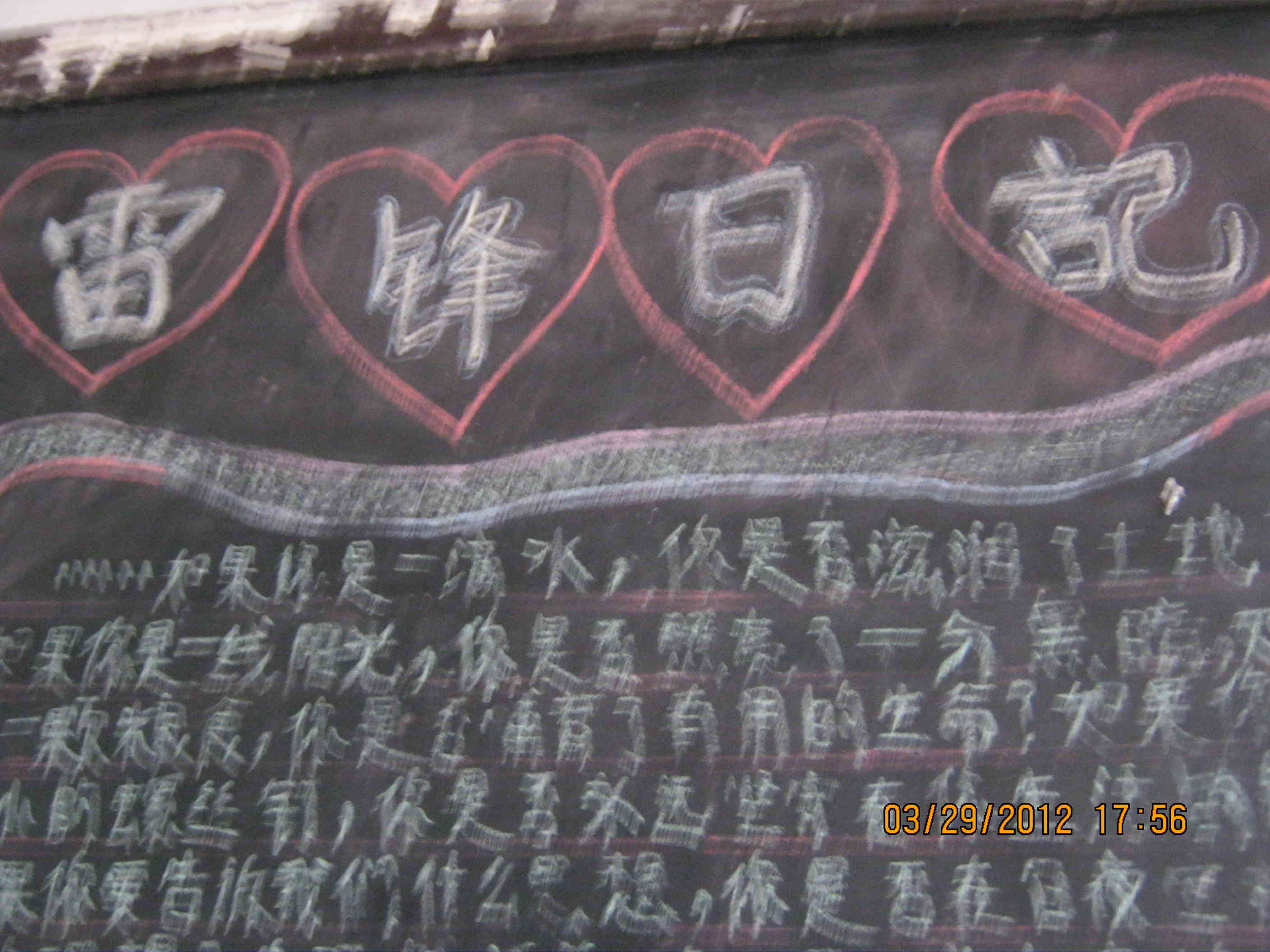 最令人注目的还是后面的黑板报,它每过两个星期就换一套“新衣服”,每当老师宣布要给它换“衣服”时,同学们都迫不及待的给它换上新的面貌,使它焕然一新,也给教室带来了一丝生机。