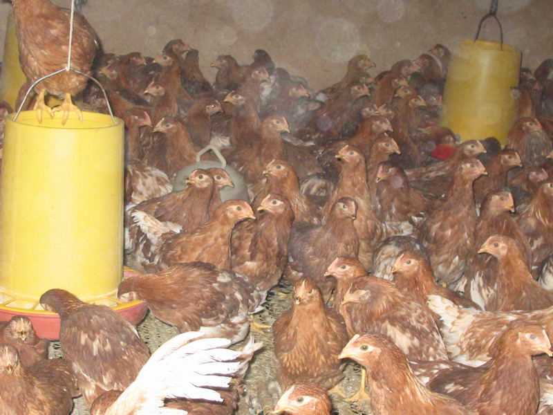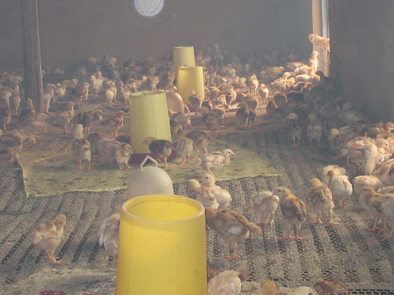 小鸡长到一定程度后,要注意鸡棚内的通风和光线,这个鸡棚的光线比较好,鸡在里面比较舒服,看,一只鸡还站在水笼上玩杂技,这说明鸡棚内通风,氧气充足,鸡的活动量大。