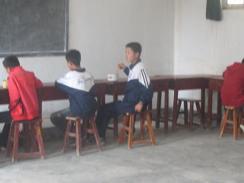 我们的学校是一所农村乡镇中学,全镇所有的初中学生都在这里上学,所以,学校里有很多住校学生。为了解决学生的吃饭问题,我校有一给不大的学生食堂。 这就是我们学校的学生食堂,使用面积大概有一间教室那么大,在里面,围者墙放了一些课桌、凳子,住校学生的三餐都在这里吃饭,学校规定:不准学生外出就餐,以免吃上不合格的饭菜,对我们的身体健康不利。
