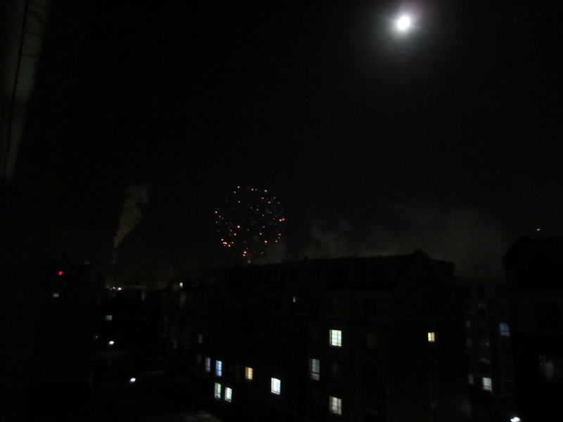 礼花鞭炮照亮了夜空,炸响了宁静的夜晚,大人小孩全都到楼底下点着各式各样的鞭炮,大家的呐喊声,互相的祝贺声,小孩子的追逐声让整个夜晚变得比白天还要热闹。