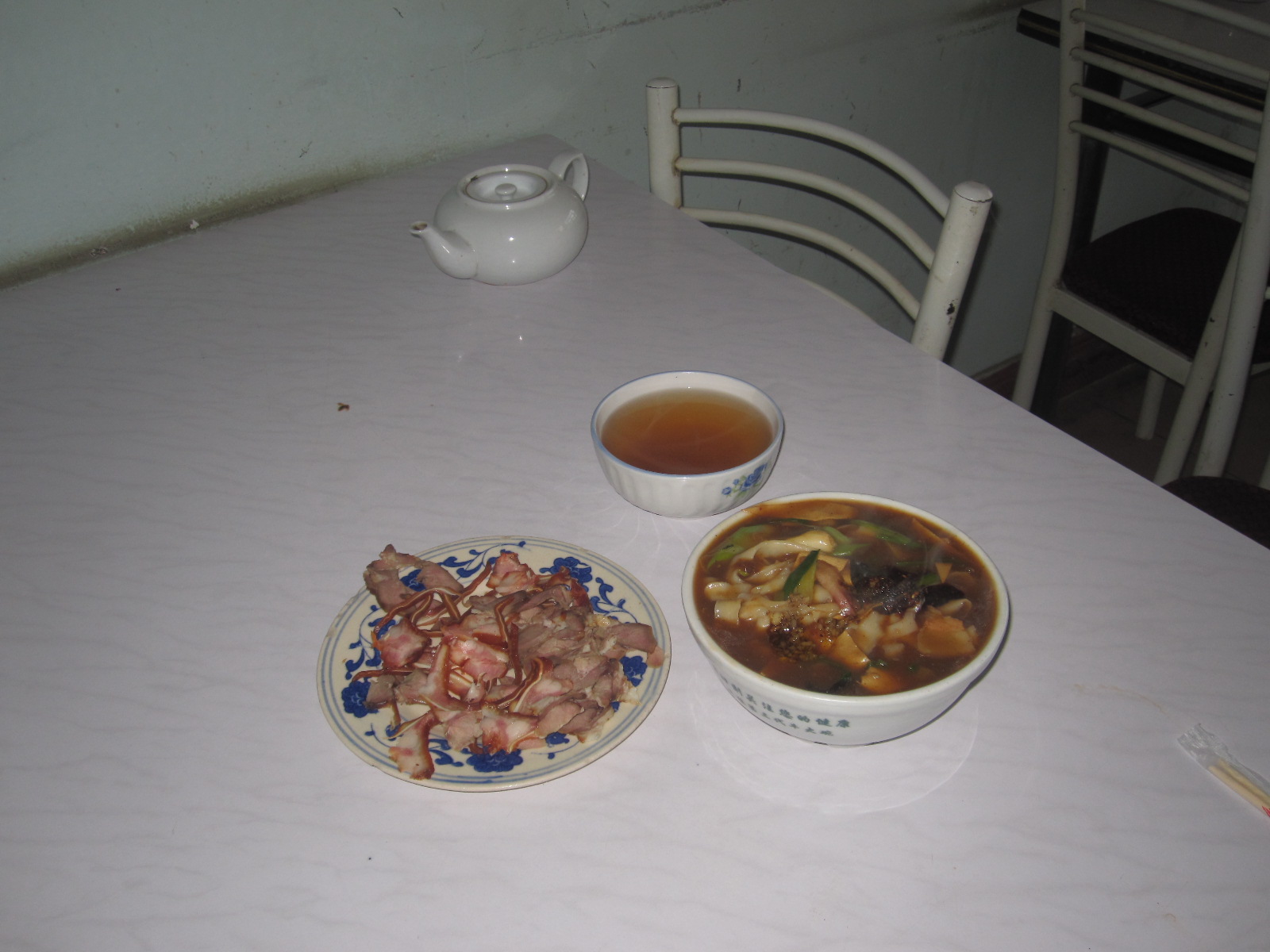 三套车由一杯苻茶、一碗卤汁醒面、一盘卤肉组成。那可正是人间极品,天上也难有啊!