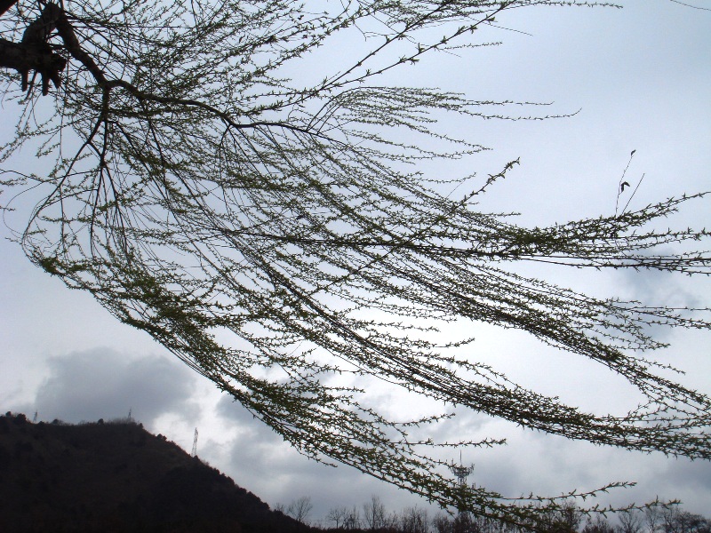 一阵风吹过,柳条随着春风在空中飘扬,多么美丽的春柳呀!