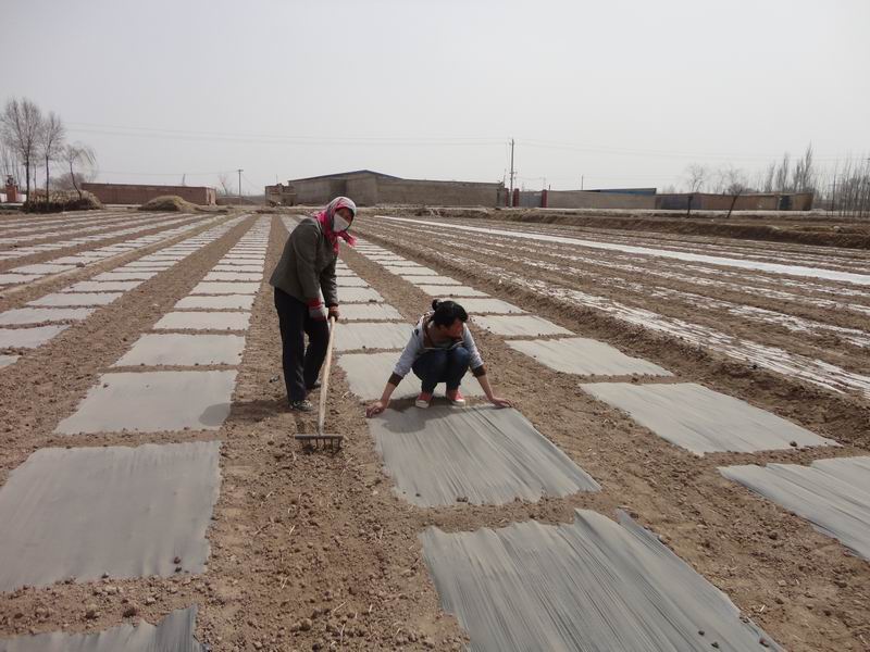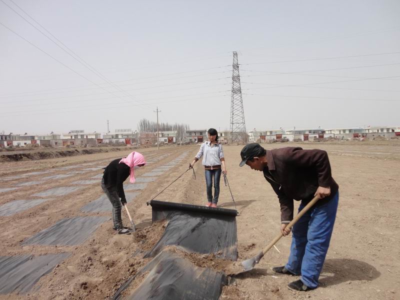 星期六一早,当我还沉浸在甜蜜的梦乡时,妈妈的“闹铃”又响了起来,美梦已被惊醒,看着表,才六点半不到,天气还是灰蒙蒙的,没有一丝光亮。妈妈说今天要铺地膜,要早点去地里。吃过早饭后,我们便整装待发。来到地上,我们把竹竿穿进地膜筒内,两端系上绳子,以方便使用,我负责拉地膜,妈妈负责压土,先将地膜头端埋进第一行的头端,挖一个长槽,将地膜头端埋进去,用土盖好,然后我将绳子拿起,两手与肩平,与地膜长度宽,然后往后倒退拉,拉至十米左右后,将地膜固定好往后扯,扯一米左右就合适了,还要注意看看两边空隙是否均匀,地膜是否平整……一切确定后,再由妈妈在地膜中间洒少量土,我压住地膜,然后在地膜两边加一个小埂,加好后,再踩踏一遍。乘妈妈做这些工作的时间里,我压住地膜正好可以休息片刻。天气逐渐热了起来,即使脱了外套也无济于事,干完了不到五行,我就累得爬不起来了。正当我惬意的休息着,忽然看到妈妈忙碌的身影,一个人做几道工序,头上的汗珠也顾不得擦一擦,我再也不能坐着了,连忙去帮助妈妈干活,她比我更累!整整一天,我和妈妈在田间奔波着,回到家已累垮了。