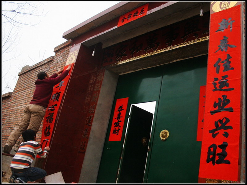 过新年必须要贴"春联"呢!爷爷特别吩咐我和哥哥们,让我们去买几对春联,贴在家门上。于是,我和哥哥们买到了两对春联,我拿起一幅便大声读道:"年年顺心福临门!"爷爷不假思索的便说出下联:"新春佳运业兴旺。"呵呵,爷爷真厉害!"我夸赞道还有一幅春联上联写着:"恭喜发财。"爷爷说春联都是吉祥话,是人们祈求在新得一年里能过上快乐幸福的日子。