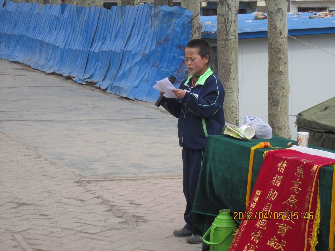 星期六早上我早早的来到了学校,学校里同学们都会没来齐,我先玩了一会儿,等同学们都来齐了,老师教我们去排队,排好队后青藏高原帮扶救助会的叔叔阿姨们来了,我可终于见到了帮扶救助会的高会长。原来他也是回族,这是我非常的惊讶。会长让我们站成两部分,一部分是小学部的,一部分是中学部的。现在大会正式开幕了。
