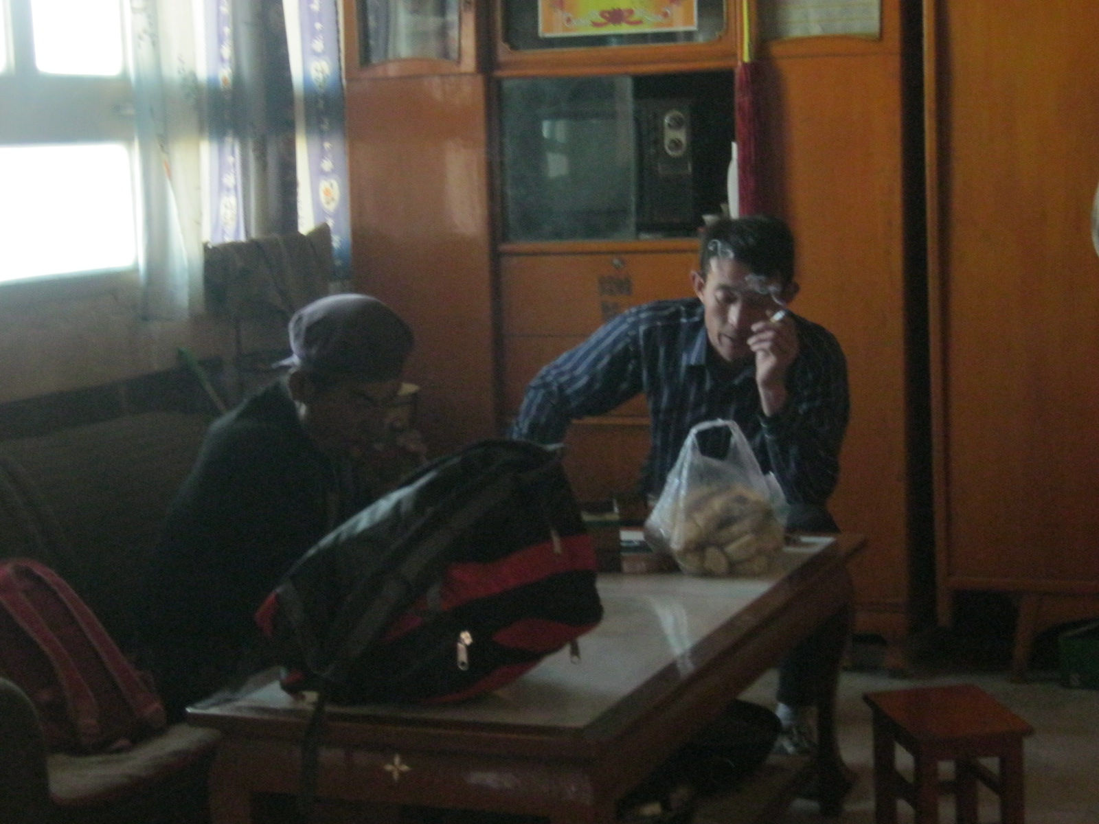 进到屋子里面,我们见到一位和白的爸爸年龄差不多的人,他热情地招呼我们坐下,又是发烟又是让水。在交谈过程中我们得知这个人是本村的白村长,他今天来主要是给白守武家进行春耕指导。谈到本村的教育时,白村长表示其实村上很努力,为了孩子们学到知识,整个村领导班子协商多次,解决孩子们上学路难行,车难乘等问题,但是这里的条件确实太艰苦了,他们的能力有限。现在就是希望国家的校车援助计划尽早能执行,以解决困扰已久的难题