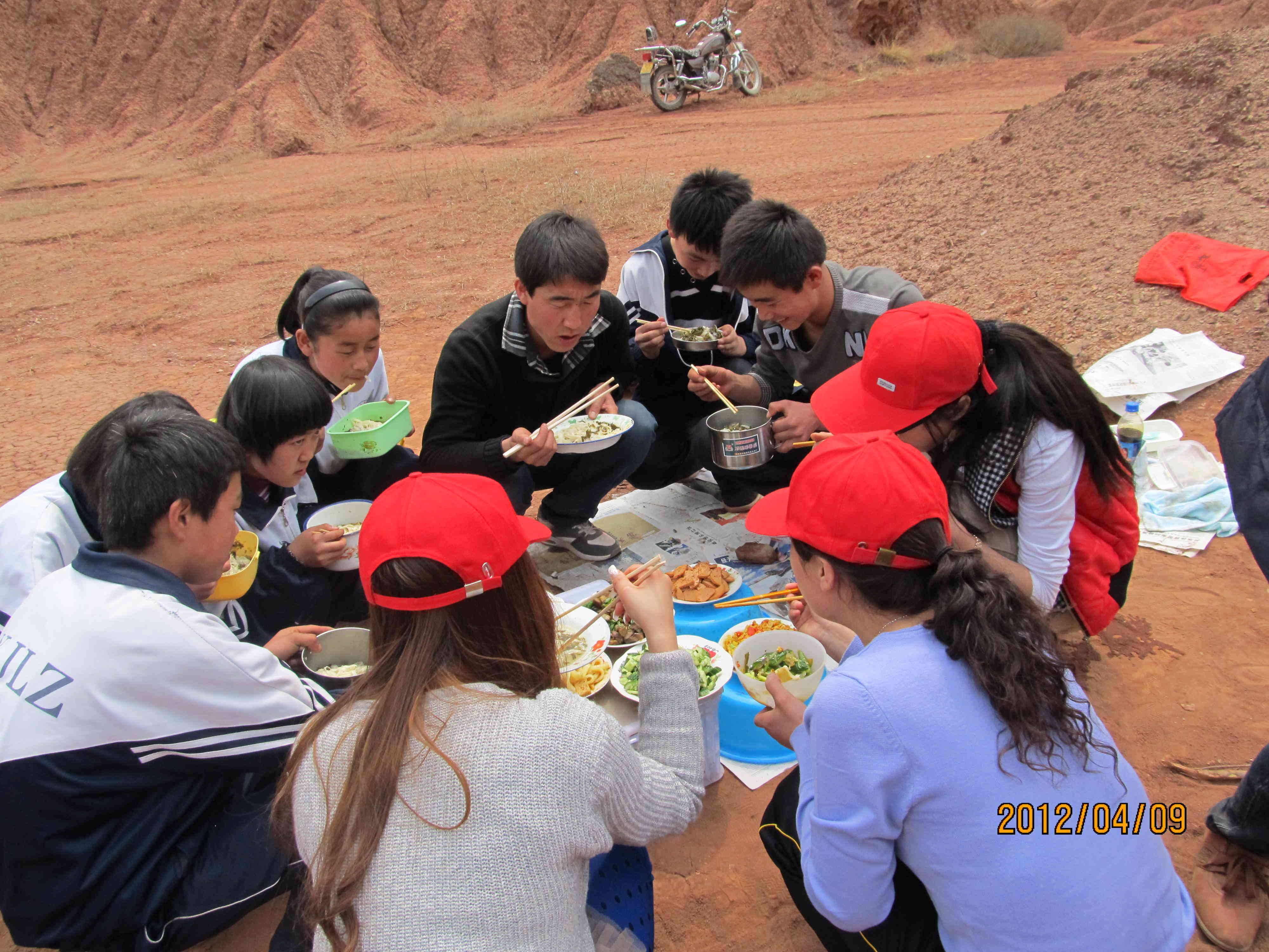 终于到了目的地,大家都没休息就开始生火做饭。一开始的时候,火很难才生着,呛得我们都眼泪汪汪的。火生着后,每组成员都各司其责。烧火的烧火,切菜的切菜......忙的不亦乐乎。
