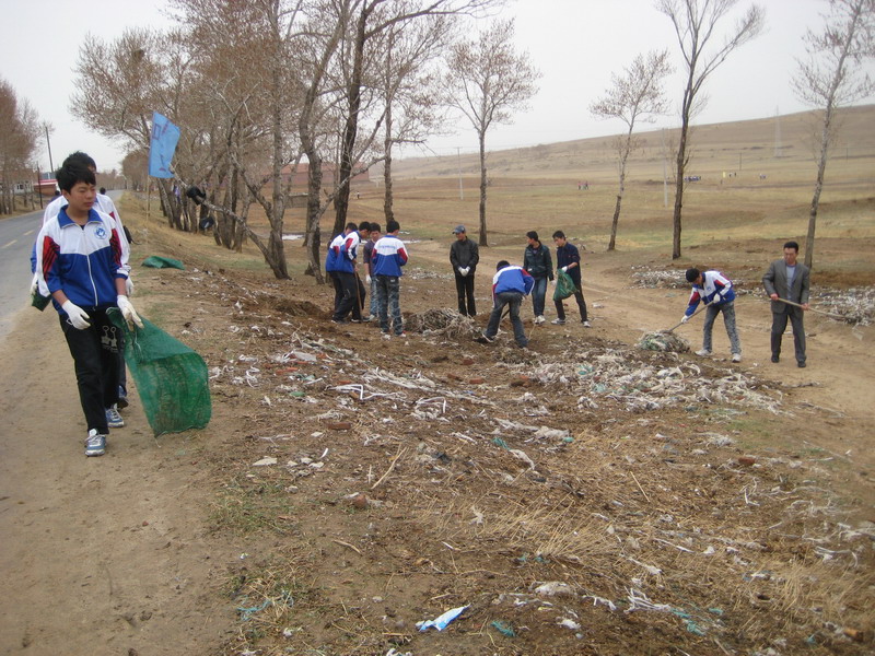 五月初,我校师生进行了“四清四化”环保行动,对镇主要道路两侧100米视野范围 的垃圾进行了彻底的清理,同时对学校校园进行了美化前期准备,通过这次行动的开展,培养了同学们的环保意识和热爱家乡的情感,体验了劳动的艰辛,感受到了生活的乐趣。————劳动最光荣。
