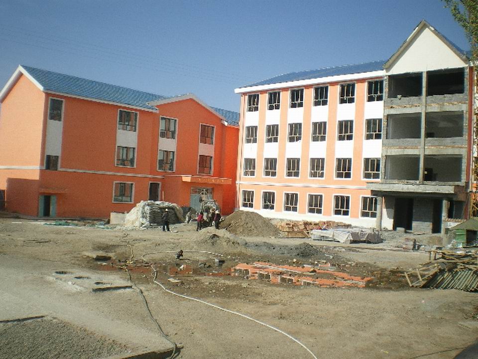远处我们的新教学楼已经拔地而起,红色的墙,青色的顶,不过还没有修好,要等到下学期才能使用,真盼望着下学期早点到来!