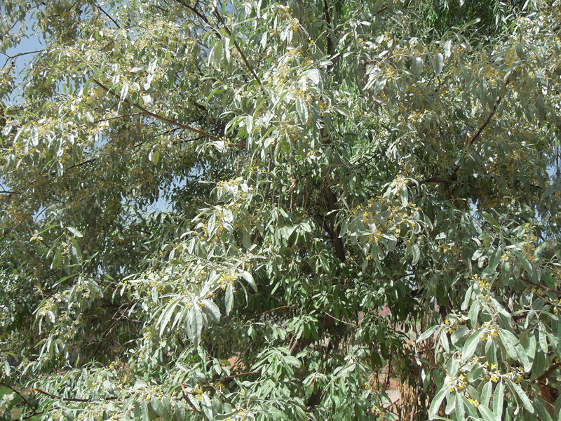 有很多人吃过沙枣,但未见过沙枣树。在我的家乡,几乎每家每户门前都会种着沙枣树。老一辈们都称沙枣树为"香柳树"。