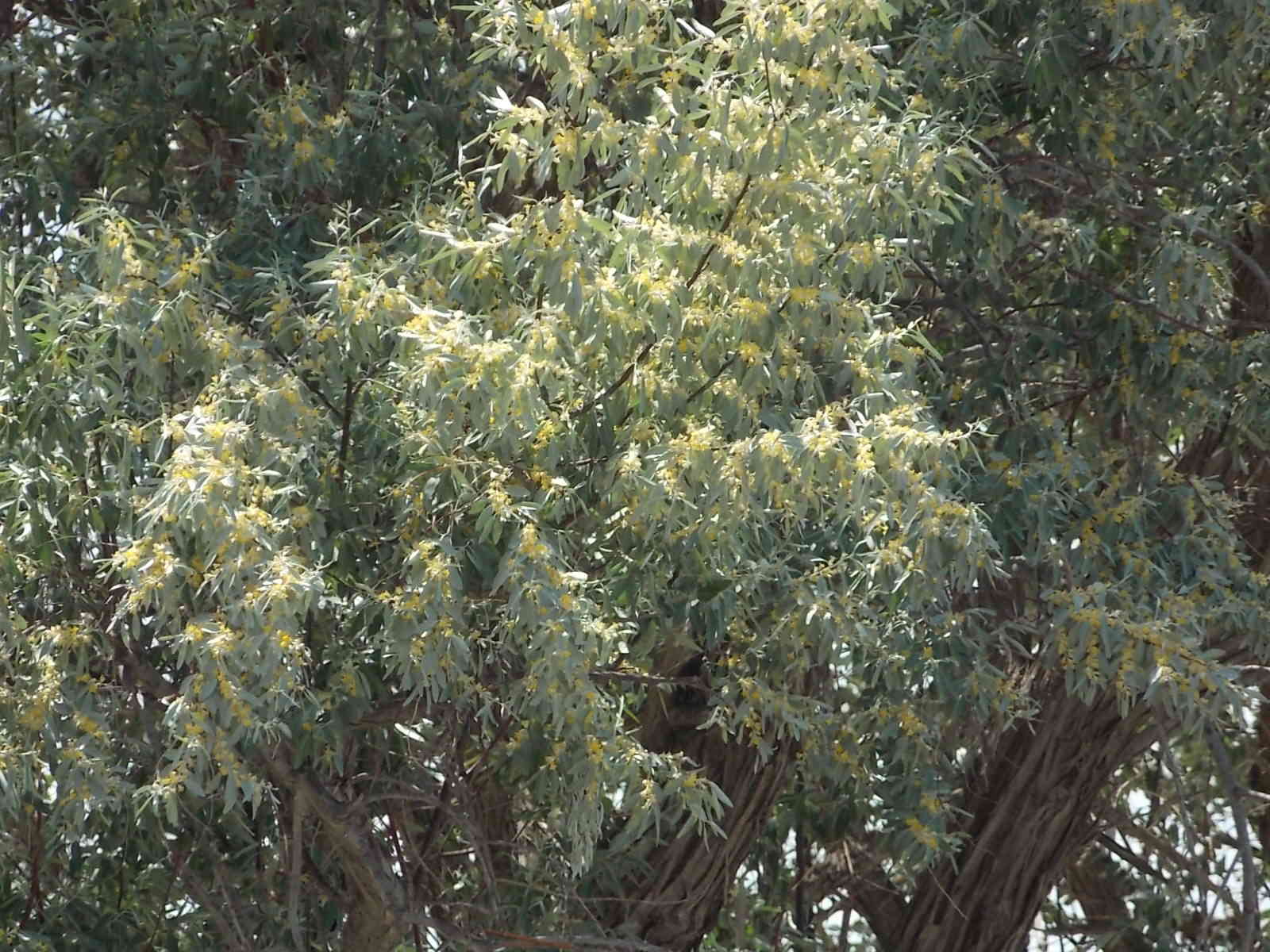 在沙枣树上,花朵如千万个金黄色的小喇叭。远处看,像一座座金黄色的小山;近处看,像一面黄中略带绿的油画,真是美丽动人。如果你在工作或学习疲劳的时候,你就应该在这里审美。