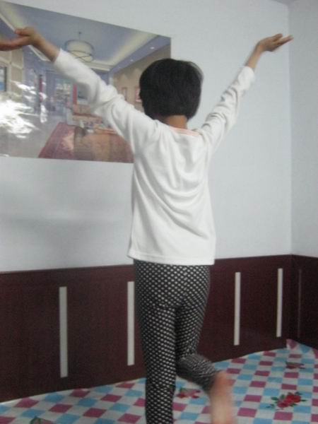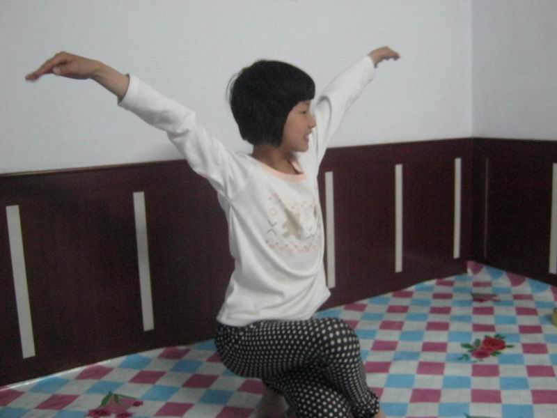我把我家的大炕当舞台。每天晚上,我都会打开灯,站在我这个自主的舞台上唱呀、跳呀,随心所欲挥洒着我的那些个艺术细胞。而且,妈妈总说我的每一个动作都特别优美。说实话,我也是这样认为的,嘿嘿!