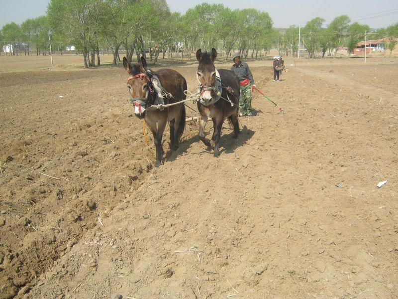 我原以为牲口拉犁毕竟走得慢,犁完一回还可歇一回,可是走了几个来回,我就有点跟不上了,这才发现一犁一犁不停地种,不等你点好籽和肥,下一犁已迫在眉睫了。