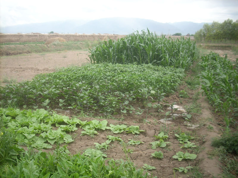 在我家的后院子里,有一块菜地。里面种了各种各样的蔬菜。有茄子,辣子,西红柿,油柏菜,豆角等。当然还少不了一样农作物——玉米。妈妈在种菜的时候顺手种了几株玉米。所以妈妈说:“以便到了秋天,解解馋。”时间一天天过去了,菜地了的菜也一天天长大了。经过我们给蔬菜上肥料,浇水等。终于,蔬菜没“辜负”我们对他们的期望。
