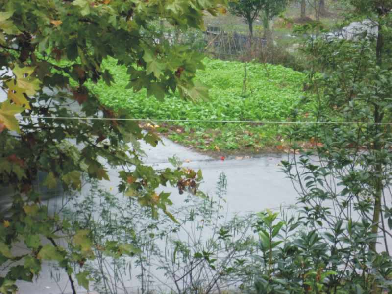 首先映入眼前的是一条清澈见底的小河,两岸挺拔的站立着许多树。树叶的倒影映入水中,水树相接,构成一幅绝妙的山水画。