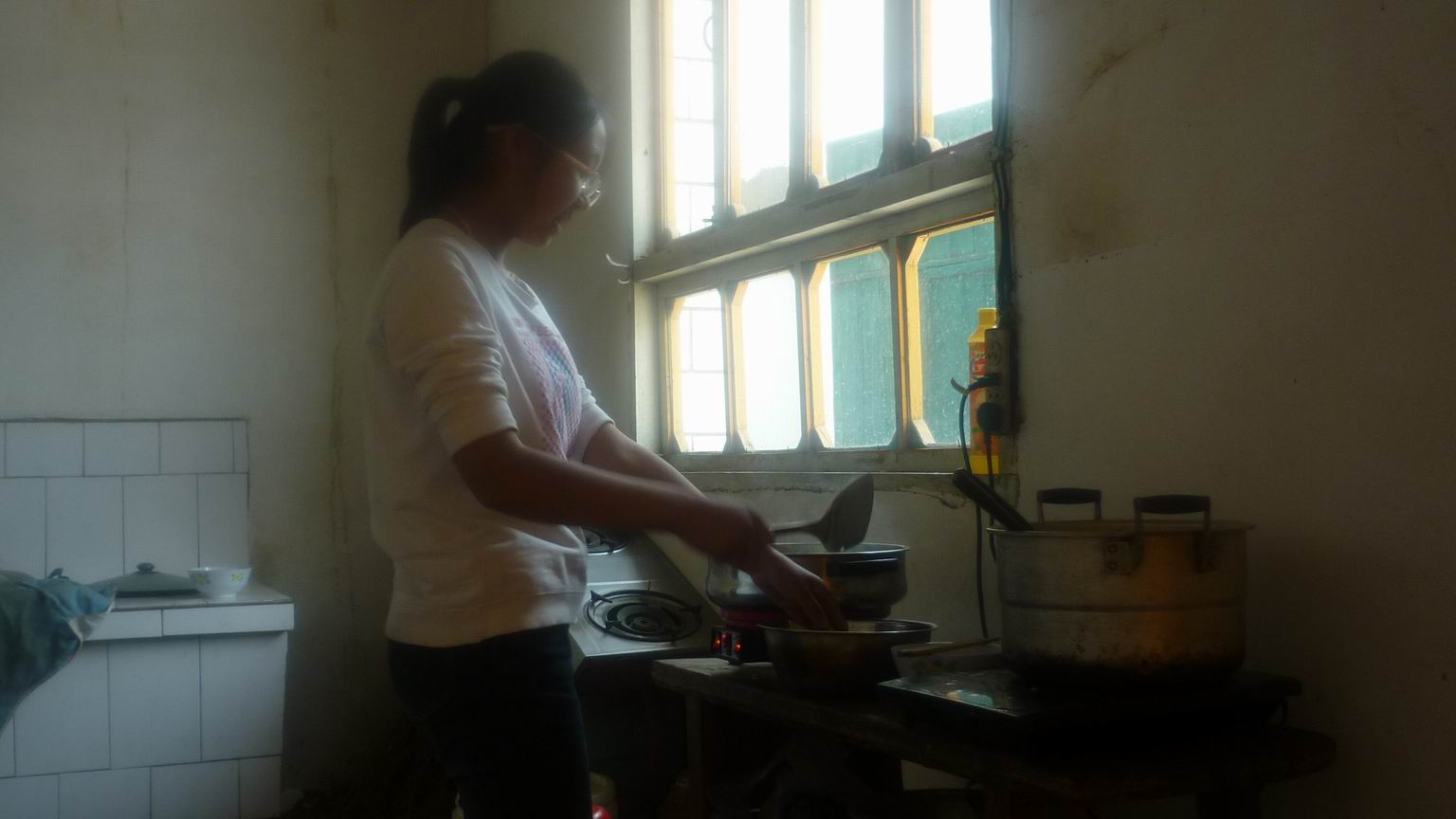 那天,家里人下地去干活了,我想让家里人回家时能吃到热乎乎的饭菜。于是我就尝试起做饭来。我先用碗盛了些米倒进盆里,然后加水淘干净米,倒进锅中,再添一些热水,盖上盖,打开了电源。米饭先在锅里沉默了一会就嬉戏起来。这中间我就摘菜、洗菜,全身被打湿后菜也洗干净了。又东一刀右一刀得把菜切成片儿,放在一旁。然后把焖熟的米饭盛出来,准备炒菜。