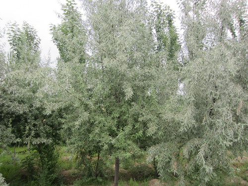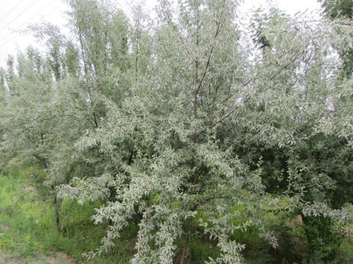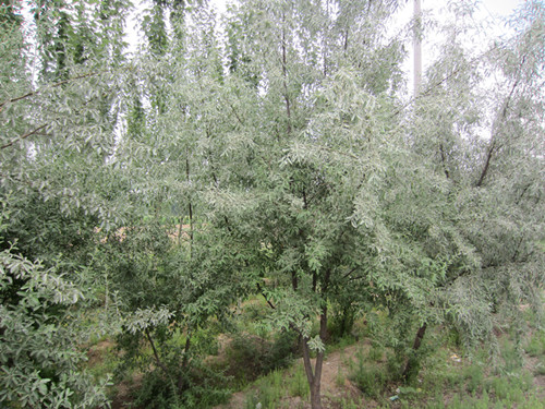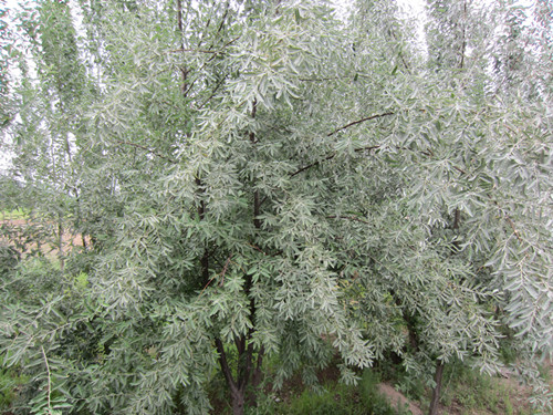 扭曲的干,蓬乱的枝条,好像一个糟老头,几年没洗澡的样子。哪像石榴,既有梅树的枝干,又有杨树的叶片,清新而不柔媚;哪像柳树,既有柔软的纸条,也有婀娜的姿态,优雅而不娇艳;哪像松树,既有四季的翠绿也有那么多的美称,质朴而不奢华······真如作家在《白杨礼赞》里所写的“:也许你要说它不美,白杨树算不了树中的好女子······”是啊,沙枣树虽算不上树中的好女子,但它正直朴实,每到秋天,都结出丰硕的果实,仍凭人们去采摘,即使最后枝折树亡时也无怨无悔。是啊,在外表上,沙枣树确实比不上其它树木,但更可贵的是它的内在美。