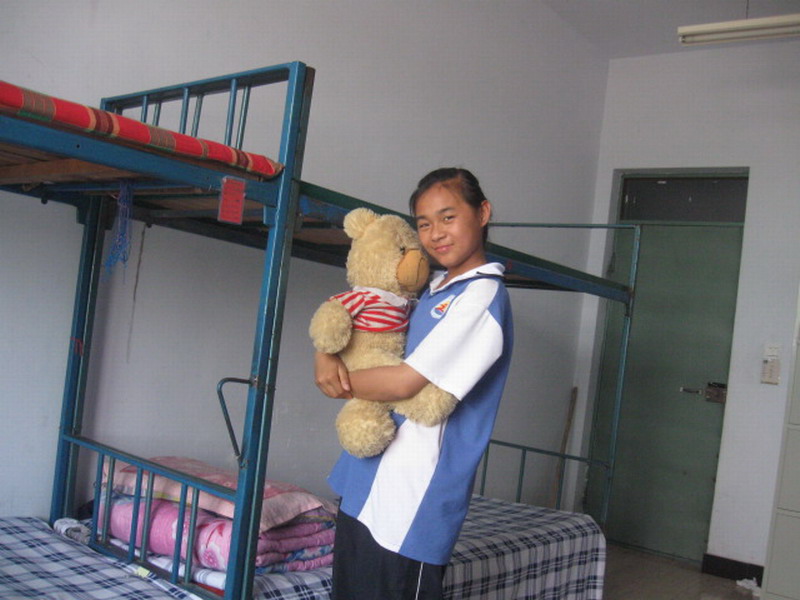而她,是我们宿舍的"和事佬",叫熊倩,外号"熊猫"。她最显著的特征就是皮肤黝黑,所以我们给她起的外号也是千奇百怪。别看她身材娇小,可机灵了。宿舍人之间如果有矛盾,她总是最先知道并且在第一时间让大家和解。除此之外,她还是我们宿舍的"活宝",常常给我们带来无限的乐趣,因此我们大家都非常喜欢她。