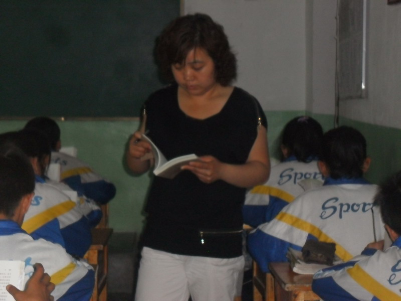 在我的心目中,我的老师非常美丽。一张圆脸上嵌着一双水汪汪的眼睛,不太尖的鼻子下面有一张能说的嘴巴。当老师将她那染色的卷发梳上,后面就像开了一朵美丽的大花朵。