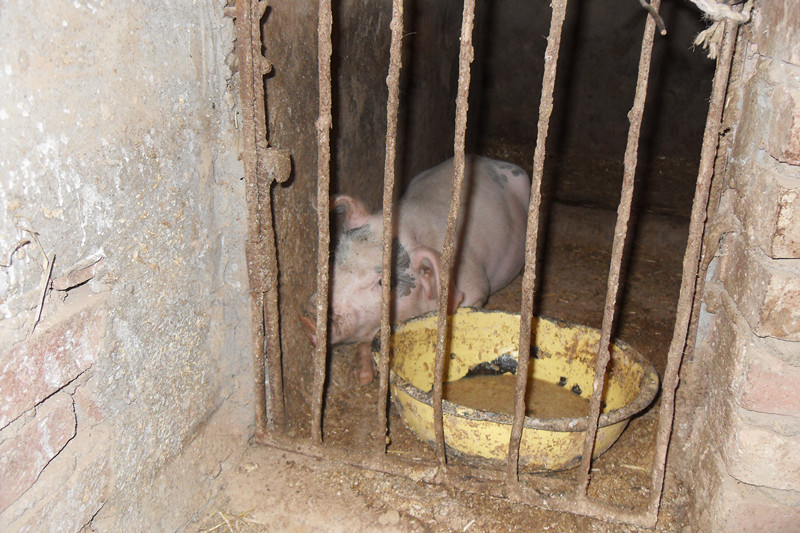 那天早上爷爷奶奶刚起床,听见小鸡叫,高兴坏了,立马找了个 箱子,掏了几个洞放上水和饲料,然后把小鸡装进箱子里。又赶紧找了几条长条布,把小猪套住,拴在院子里,还给小猪找了一个铁盒,在里面放上饲料。小猪吃的可好哩。