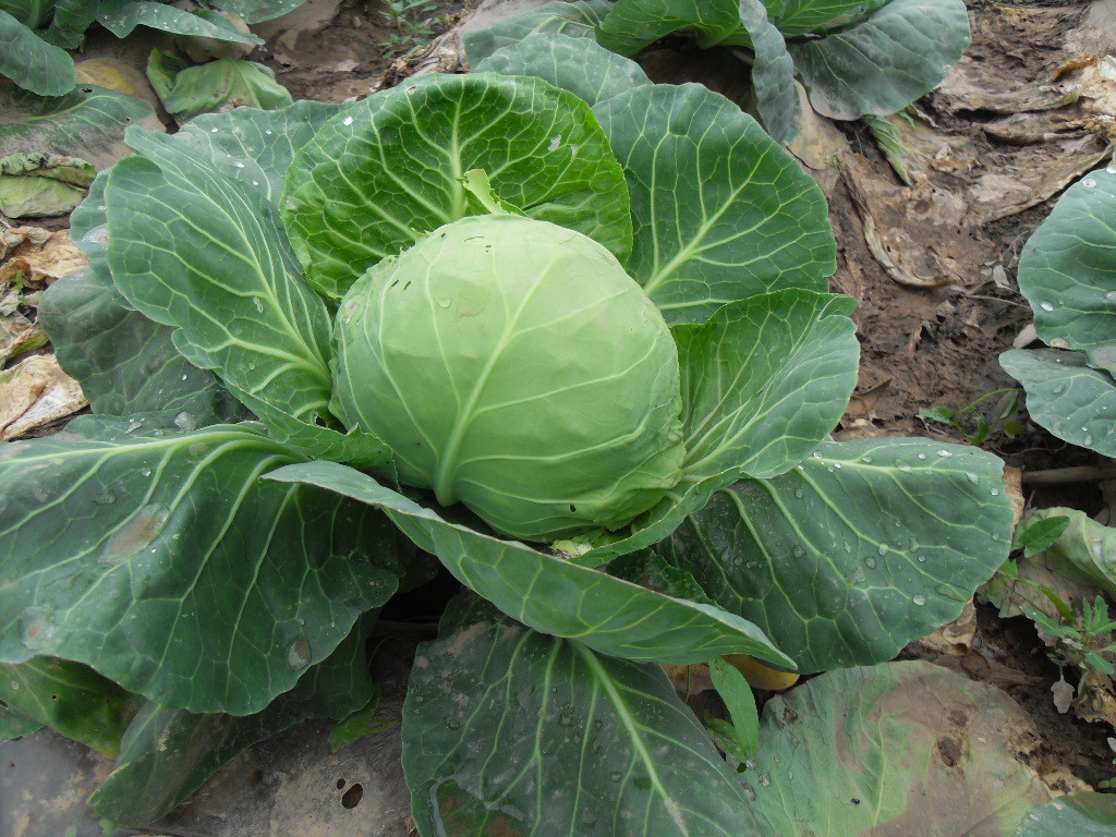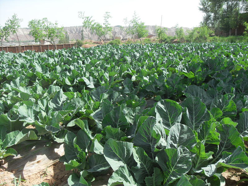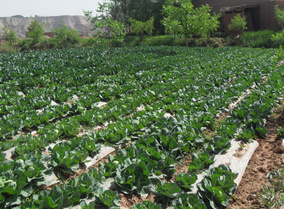 包心菜大概是三月时播种着,生长速度也比较快,所以在夏季便可以收获,而且市场对于包心菜的需求量也很大,人们也就大量播种生产。还有几种蔬菜也是点缀着我身边这片土地,像疙瘩菜(甘蓝)、菜花、豆角等,都是我们这边的农民常种的。