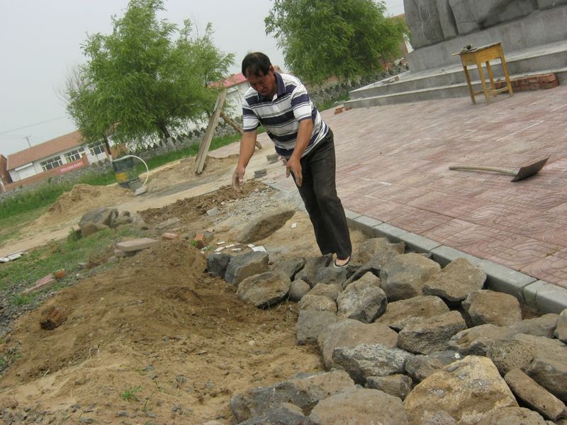 这是一个小工,挣得不多,每天70元,但干得活很重也很杂,他是待候技工的,直接受人家的指挥,叫干什么就得干什么,人家今天垒石头,他就得搬运石头,人家今天抹灰,他就得筛沙子、拌灰、铲灰。他一边干活还一边和我说,好好念书吧,不然就得和我一样干这样的活,挣这么多的钱。