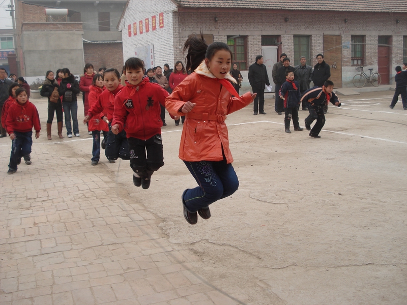 四年级学生有踢毽子的、踢沙包的、跳皮筋的、跳房子的、打面包的,他们主要玩的是我们这里的地方游戏。
