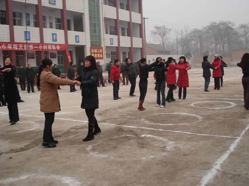 他们是全镇各小学的领导和教集体舞的老师。通过参观学习,他们将会把经验带回自己的学校,在自己的学校里开展丰富多彩的体育锻炼活动。