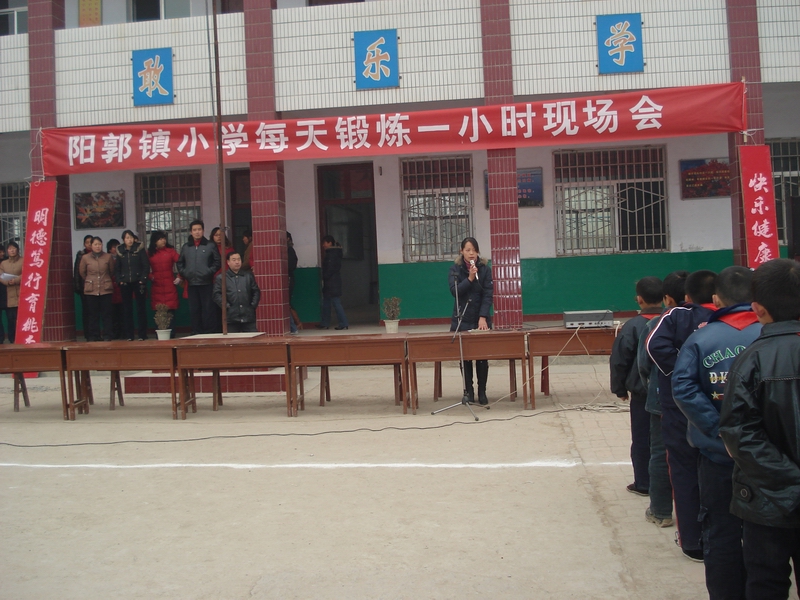 杨校长进行现场会的总结及今后“每天锻炼一小时”的工作安排,倡导全镇小学把坚持“每天锻炼一小时”作为学生的“必修课”、学校的“基本功”。