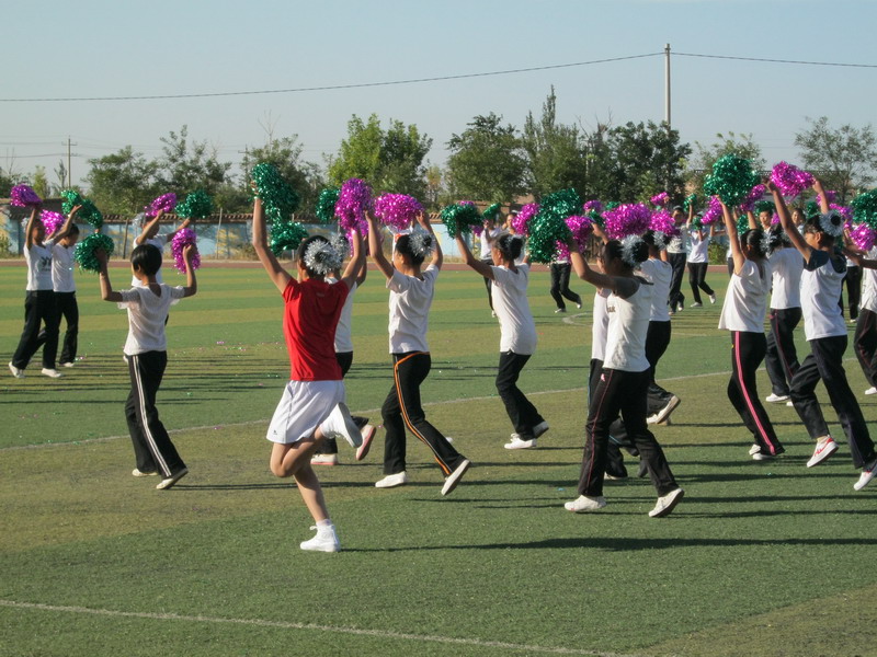 在操场上,所有人都意气风发,喜气洋洋,大家都神采飞扬。腰鼓队总共有一百多号人,这可全是长时间训练的精英呢。他们都满面春风的挥舞着自己手中的彩带鼓吹锤,一个个都尽自己所学,全部展示了出来,大家看着这些表演,都兴奋及了,但更多的是激动和满足,因为终于如愿以偿,大家盼来了这个难得的日子。