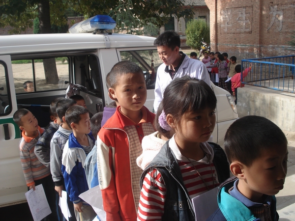 10月10日上午,阳郭镇卫生院的大夫们给我校学生来上门体检。关注青少年的健康已经成为一项惠民工程,每学年都会进行。