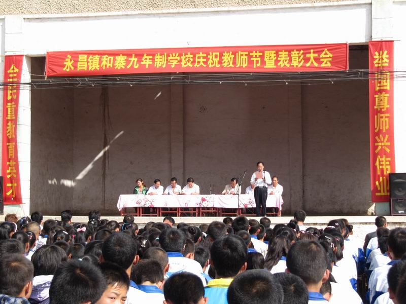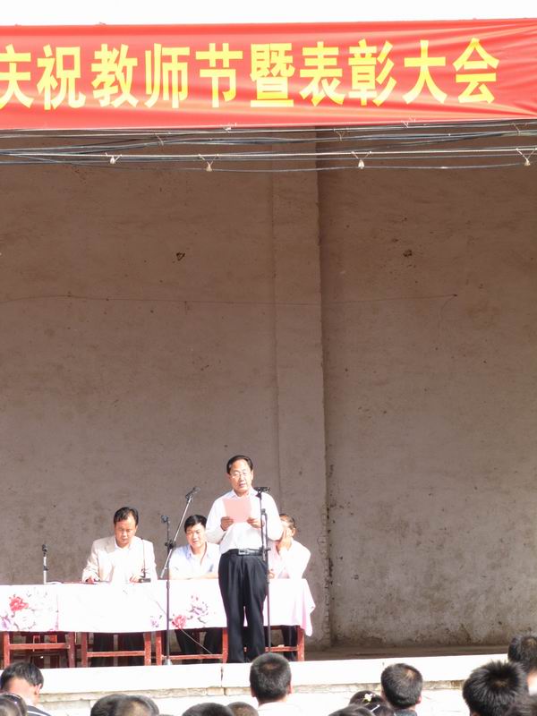 最后,我送老师们一首诗:“四度春风化绸缪,几番秋雨洗鸿沟。黑发积霜织日月,粉笔无言写春秋。蚕丝吐尽春未老,烛泪成灰秋更稠。春播桃李三千圃,秋来硕果满神州”。