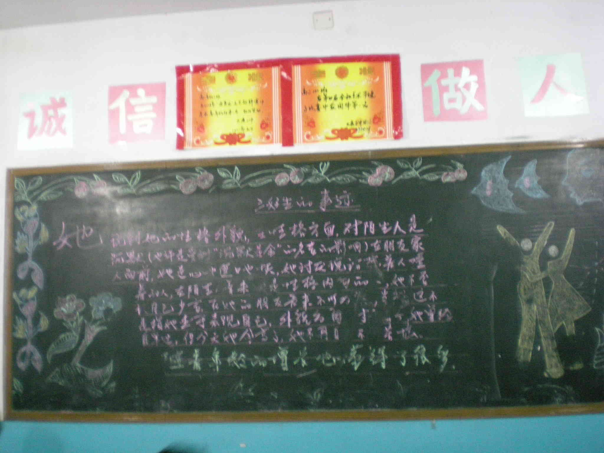 我负责办黑板报,黑板报不是不好办,只要画一点花纹,写一点字就可以了,开始我以为。做起来不太容易,同学们找了一些材料和有关书籍便开始办,大二找到了一副关于班级体的板报,可是有了板报用什么花纹呢?写什么内容?画什么画?这时大二又找出了一页花纹,正合大家之意。大家量好,有的在写字,有的在画画,花纹成了四边的主要结构。王力的字非常漂亮,写的美极了。