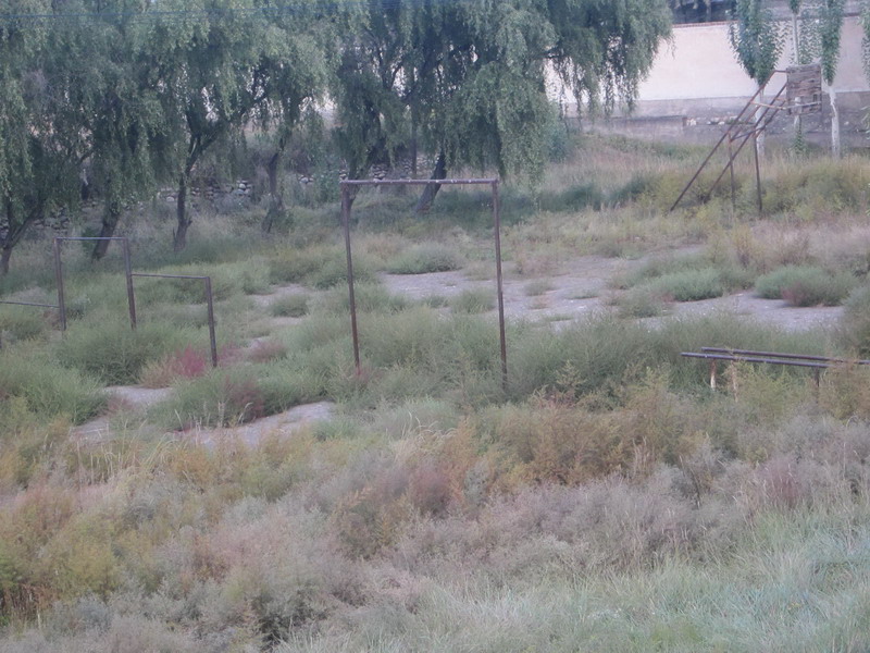 我信步往操场走去。这是我曾经的乐园吗?曾经我们嬉戏、玩耍的乐园,竟然杂草丛生、满目荒芜。我惊呆了!看,这不是我们当年叱咤风云的篮球场吗?那不是我曾经大展身手的单双杠吗?我真不敢相信,曾经洒下我们多少欢声笑语的乐园竟已如此破败不堪!我的乐园,我的乐园已一去不复返了。我久久怅然。