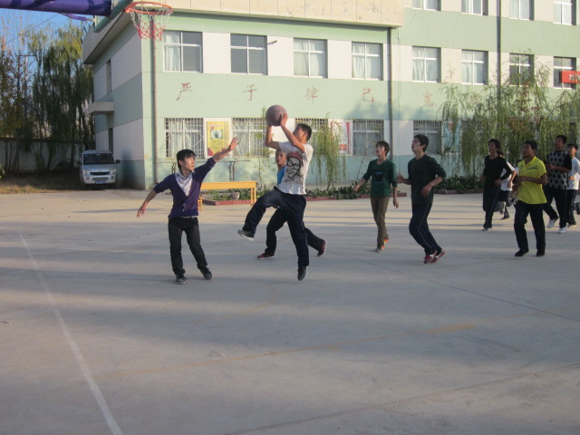 到了中场休息,运动员下来了,所有的拉拉队员都走到他们跟前,给他们递水,老师指导着,策划着。 口号又响起,又激起了热情,运动员又上场了。这时我们班又抢到了球,周围二班的队员将他 紧围,但难不倒他们,只见一个人带着球跑,其他男生向外散开,跑着传着球。这时主力队员罗宏学被包围了,大家为他深吸了一口气,只见他将球往后一绕,腿脚左右一配合 ,进行了一个相当优美的转身,躲过了二班的防守, 成功地将球投进了。