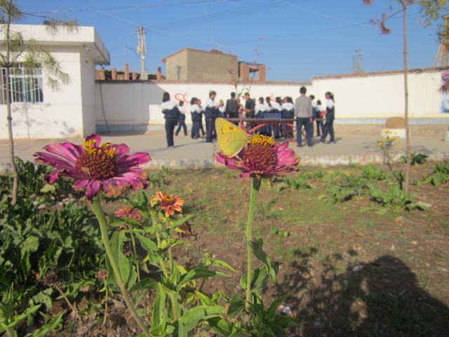 坐落在湟水河畔的永靖六中,由于地处比较偏僻,学校的条件并不是很好。不过学校里的几个花园,给山窝窝里校园增添了不少的色彩。这几个花园里的花都是我们和老师亲手种的,我们一起翻地一起浇水,共同促成了美丽的校园。