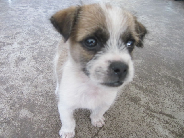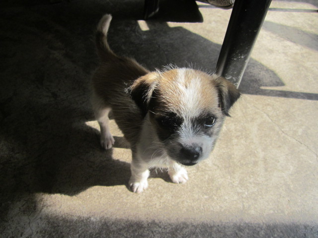 小狗乐乐刚来时很小,眼窝黑黑的,还围着一条白色的"围脖"。两只小耳朵竖起来,眼睛总是不停的瞅瞅这儿望望那儿,鼻子也总是不停的闻着,身后的小尾巴也很有节奏的摆来摆去,好像是有多动症一样。如果有一秒钟不让他动,我想它那小爪子上的指甲也会被它在地上磨没了。