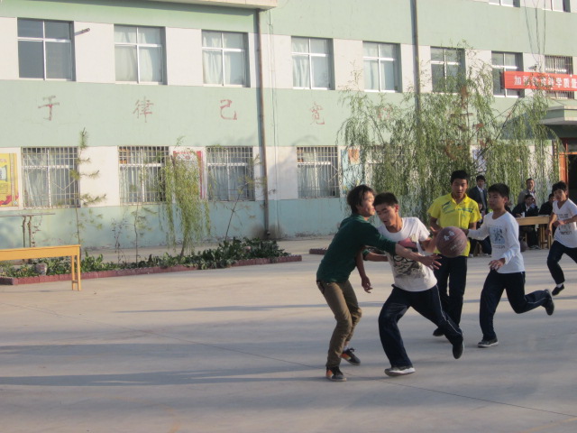 接着,运动员又开始发球、抢球,运动场上比赛很激烈,双方队员都竭尽全力地去赢球,不知不觉中,又一个球进了,旁边的同学又喝彩一阵。运动员仍各个像勇猛的老虎一样冲向篮板,看!又一个球进了。就这样,我们班的队员一个接一个的进球,是另一个班的同学眼红,又不禁失望。