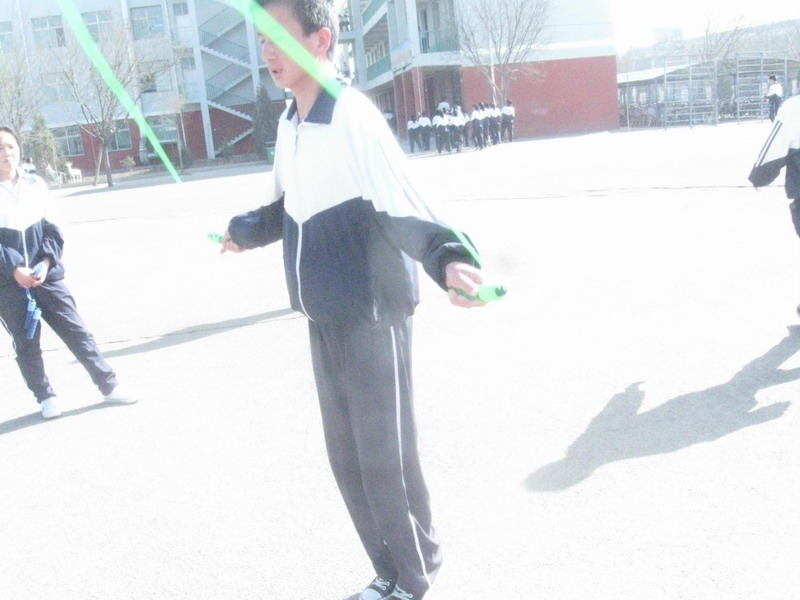 每当到大课间的时候,都能看到他们为了中考体育而坚持锻炼的场景。看,一个个马尾辫在跳跳绳时飞扬晃动,像一个个舞动的精灵;男生们一个个像蚱蜢一样飞弹出去。让人无不为他们的体育中考精神而喝彩,同时也为他们的青春年华而感慨。