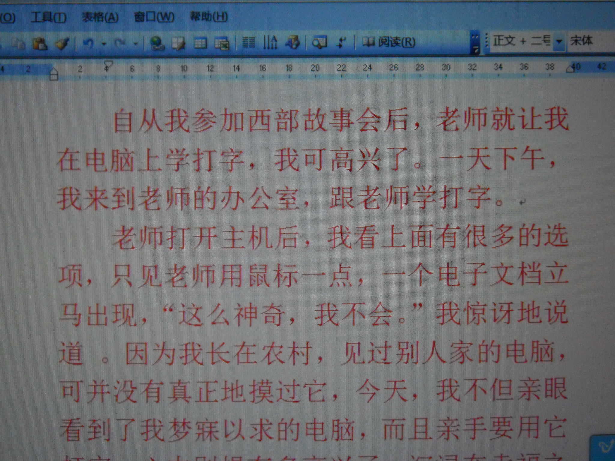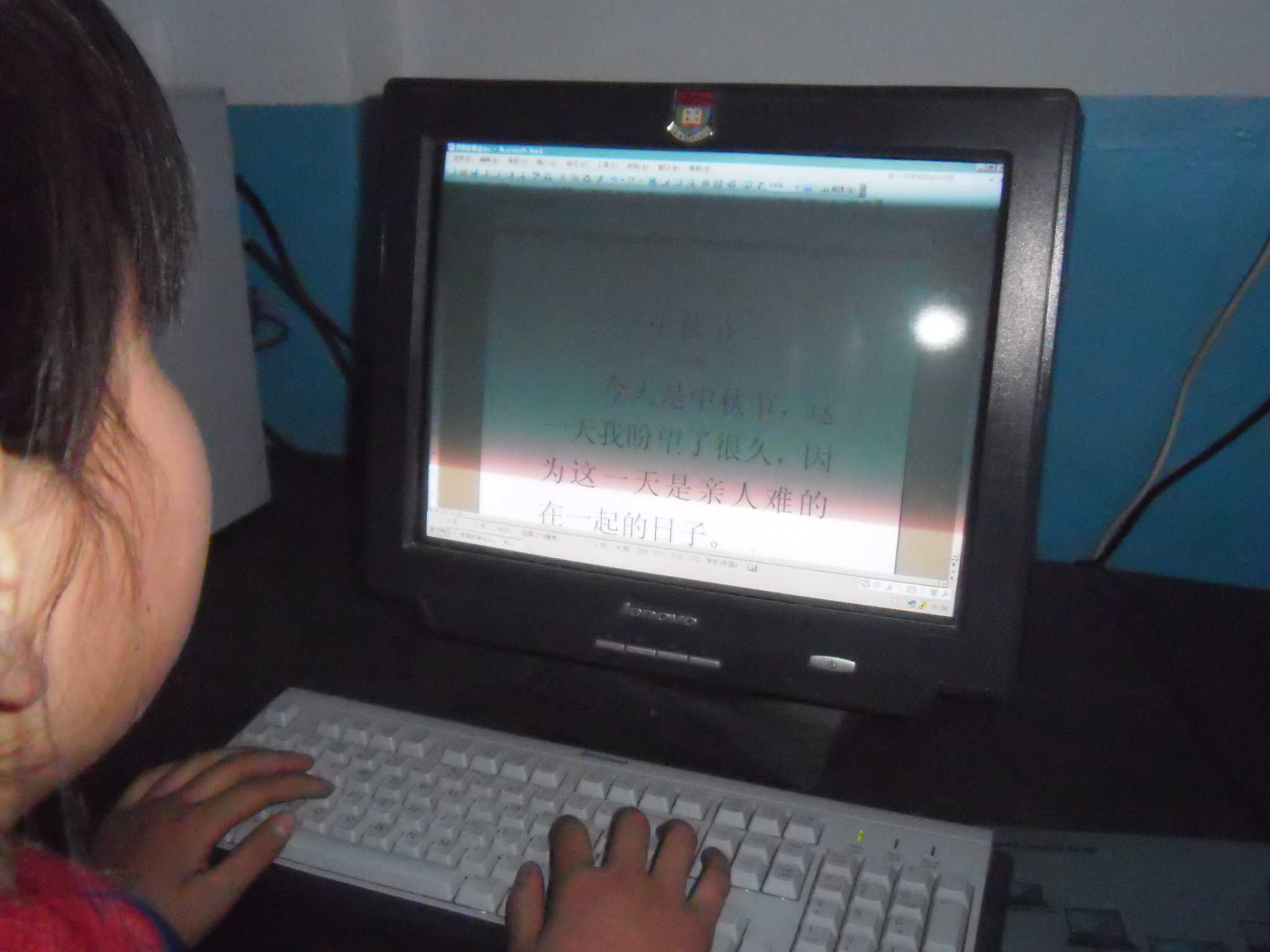 自从我参加西部故事会后,老师就让我在电脑上学打字,我可高兴了。一天下午,我来到老师的办公室,跟老师学打字。