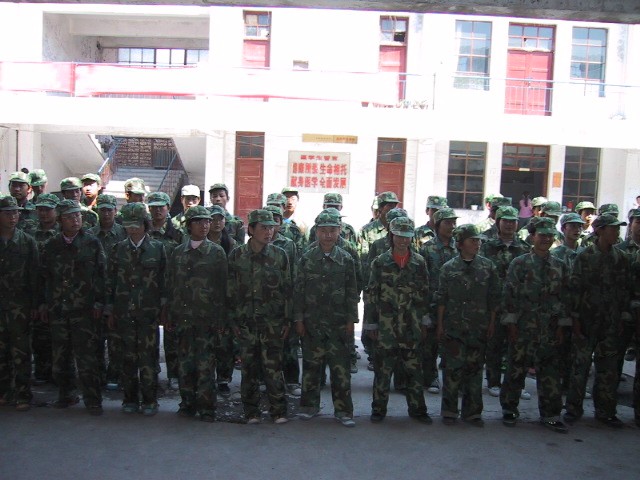 在发完迷彩服后,时间似乎过得很快,不一会儿就到了下午,大家还没适应过来呢,在紧急集合之后,总教官开始训话,并介绍我们每一个排的教官,不一会儿,各个排就开始分开训练,一开始训练站军姿,因为刚刚开始,大家也都很好奇,一个个都将腰杆挺得笔直,可是,不一会儿,大家都开始感到腰酸背痛,但是没有办法,就这么忍着......好想稍稍休息一下,哪怕半分钟也行,可是哪里有机会呢,教官在一旁严密监视,如果有谁在偷懒,轻则会大声呵斥,重则会挨上教官的一皮带,没办法,这是军训,我们必须得有个军人的样子!