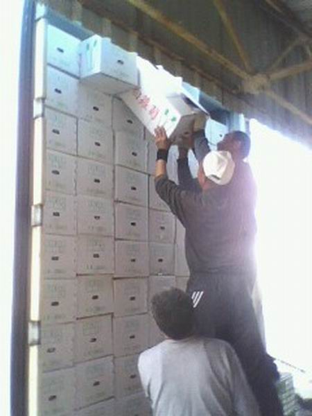 集装箱车开动了,搬运工们稍休息片刻,又为下一柜做着准备。蔬菜搬运工们,我敬佩你们!