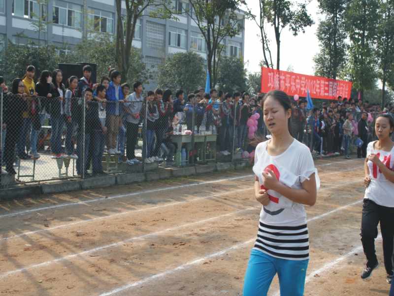 比赛一场又一场的过去了,眼看着离我的个人项目“女子800米”越来越近,我也越来越紧张不安,身体还不由自主的开始颤抖,双腿直发软,原来对于拿名次没敢抱多大希望,看到眼前这些一个比一个厉害的对手,心里更是没有底了,本以为是6个人一组的小组赛,结果没想到竟然是15个人一起跑……上赛道了,看到那么多的人在为自己加油打气,心里真的好开心,只听枪声一响,800米赛程真的开始了,当跑了一半的时候,我似乎就快没力气再跑下去了,但我知道,不论怎样我都要坚持跑到终点,就在这时,我的好朋友和班上的同学都来陪我一起跑,那一刻真的好感动,而且一路上跑着都会听到同学们的呐喊。