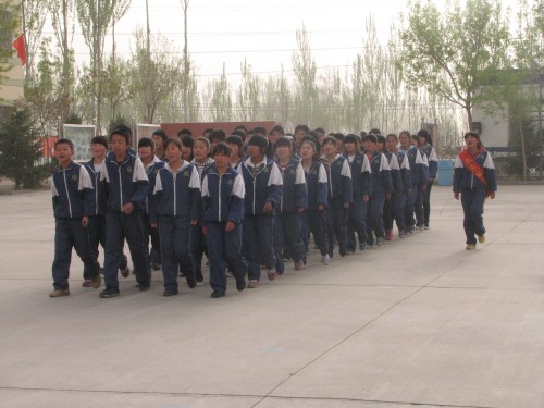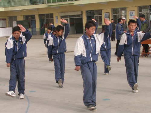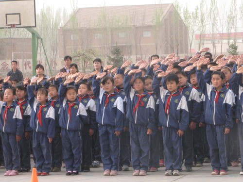“一二一,一二一······”大家迈着整齐的步伐,喊着响亮的口号,正在出操。
